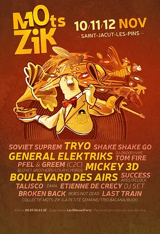 Créé en 2007 par l'initiative des jeunes issues du Foyer des jeunes de la commune de Saint Jacut les Pins. Le festival MOTS ZIK a su chaque année mettre en oeuvre l'ensemble des ingrédients utiles à sa longévité : son indépendance financière, sa solidarité intergénérationnelle, son esprit d'initiative, son énergie, sa débrouillardise !